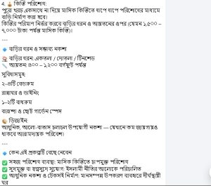 • Build your dream home in 60 installments of 3000 taka for 5 years